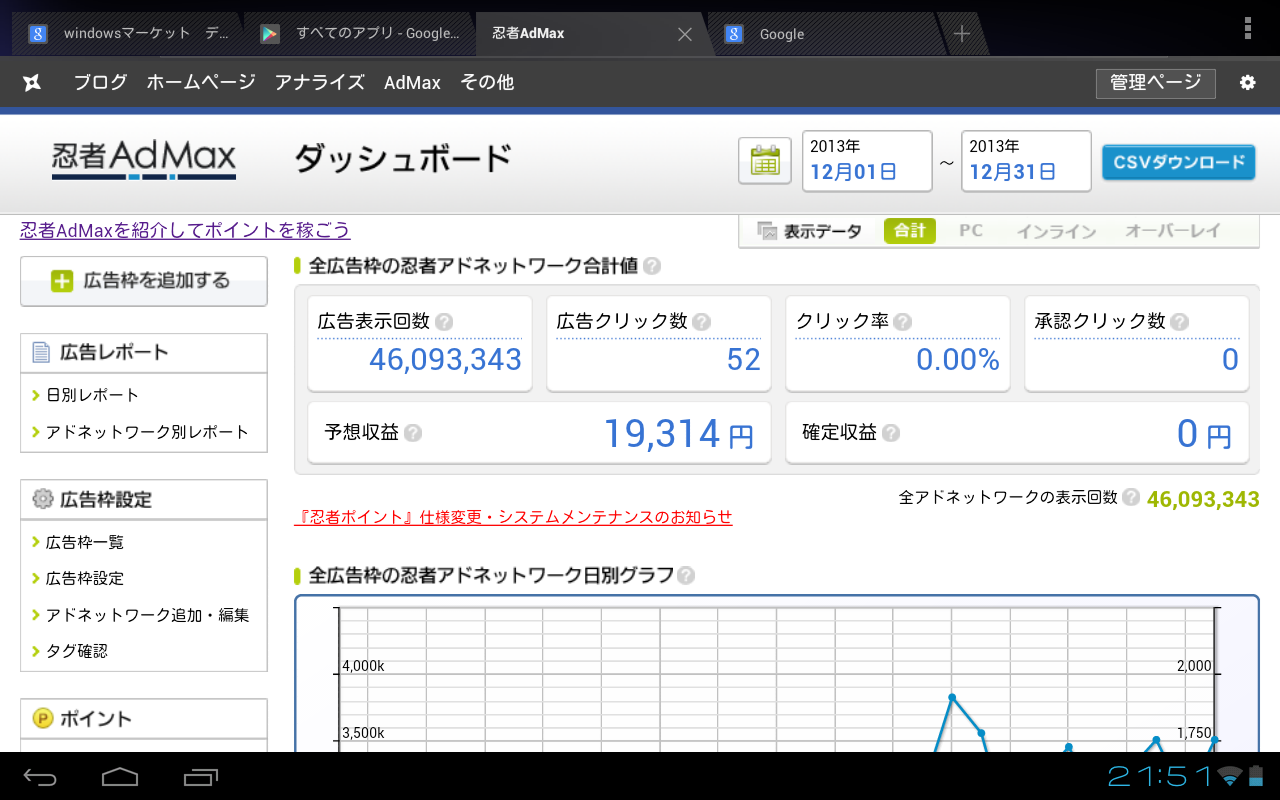 さて、Androidアプリの広告収入でお金持ちになれるか?というこのブログですが、
